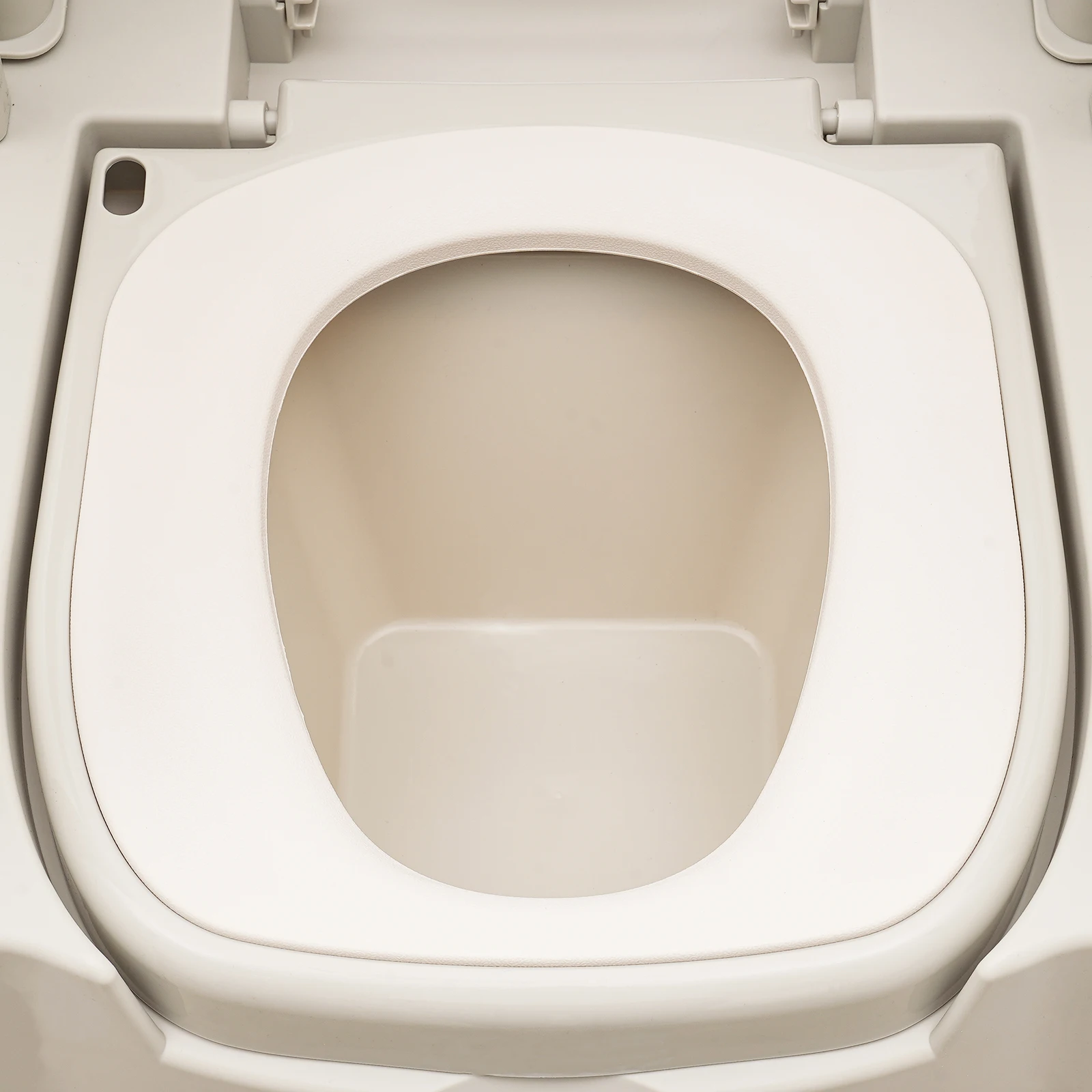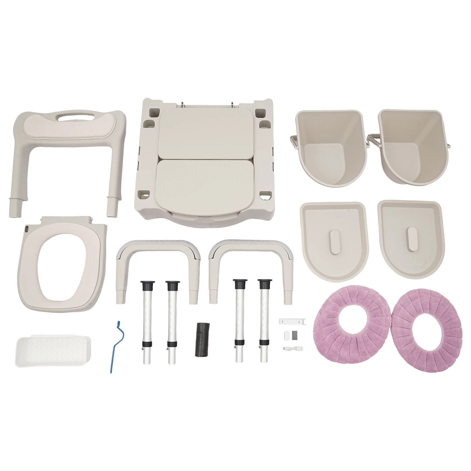 - You get a complete system in Grey White or Khaki, with replacement buckets, toilet seat covers, a toilet brush, night light, and all assembly hardware.