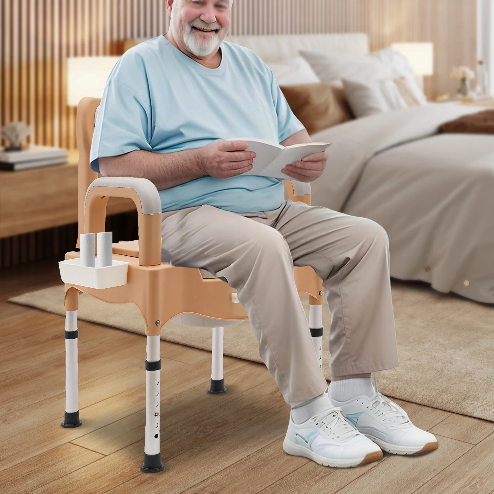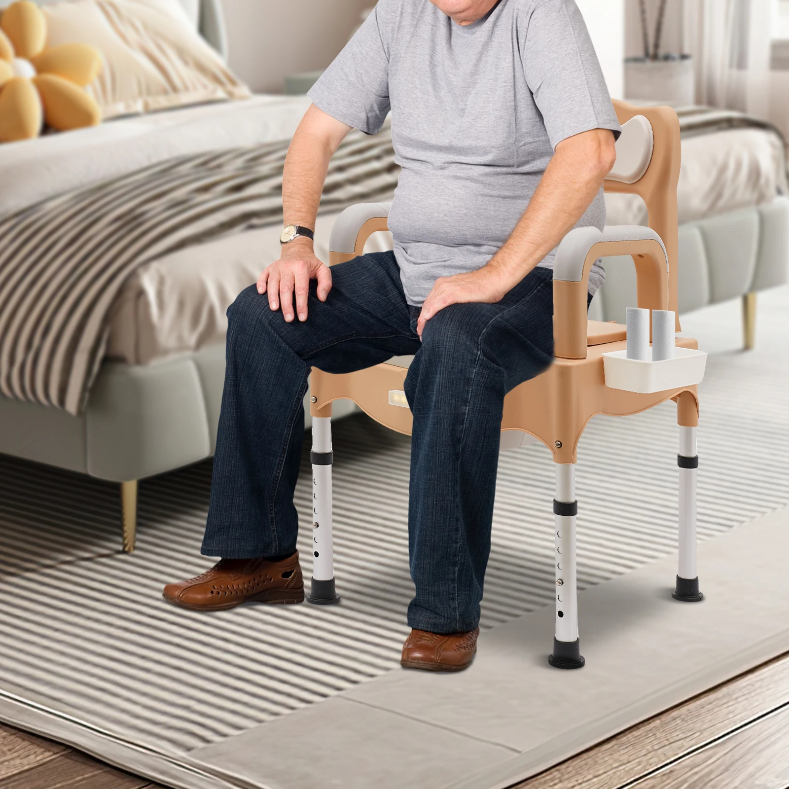Experience secure dignity and practical comfort with this adjustable bedside commode chair designed for daily independence.