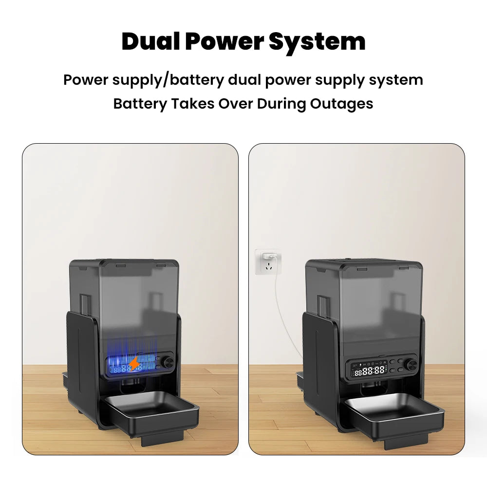 - AC/USB dual-power with battery backup and a 5L capacity keeps meals on track during outages, while top-grade 304 stainless steel trays ensure hygienic feeding.
